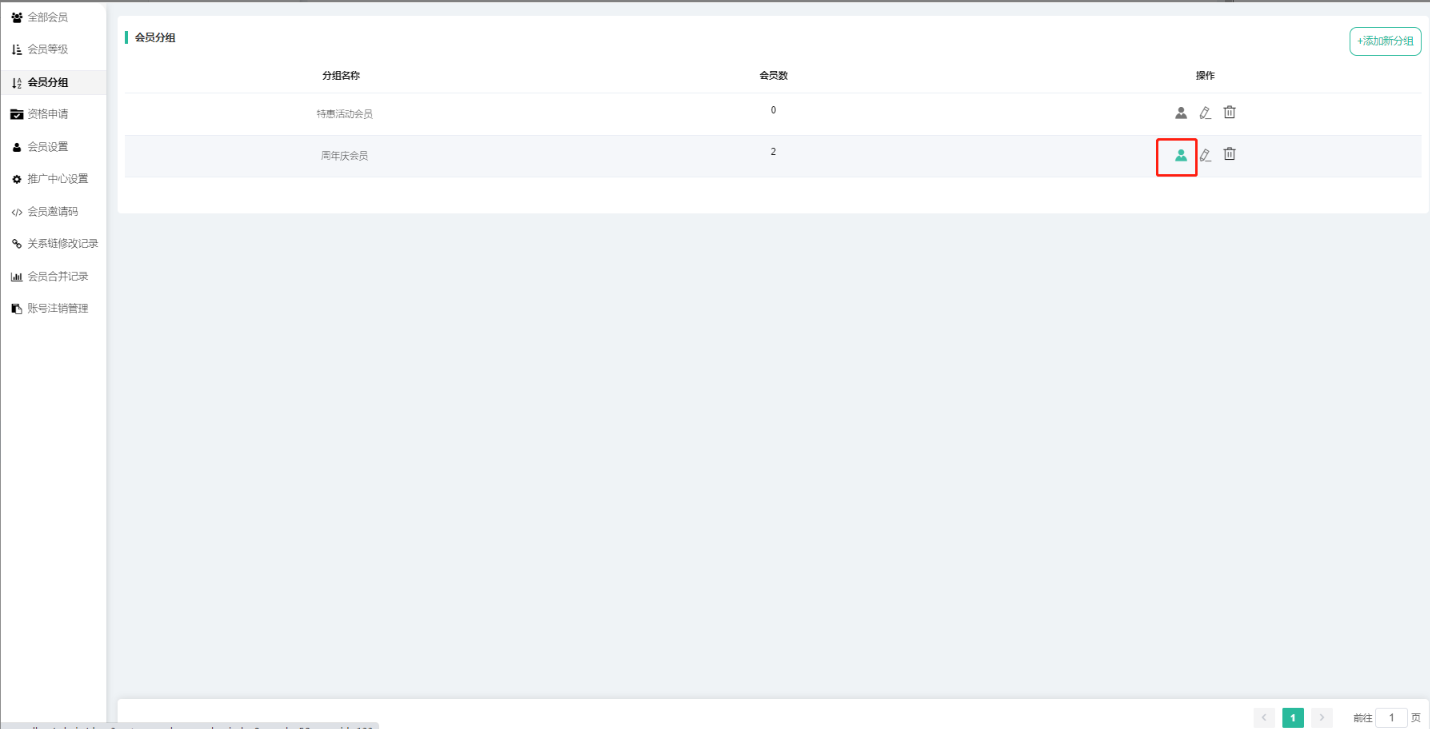 三、返回会员分组,点击查看,即可查看该小组会员信息,支持修改小组会员信息
