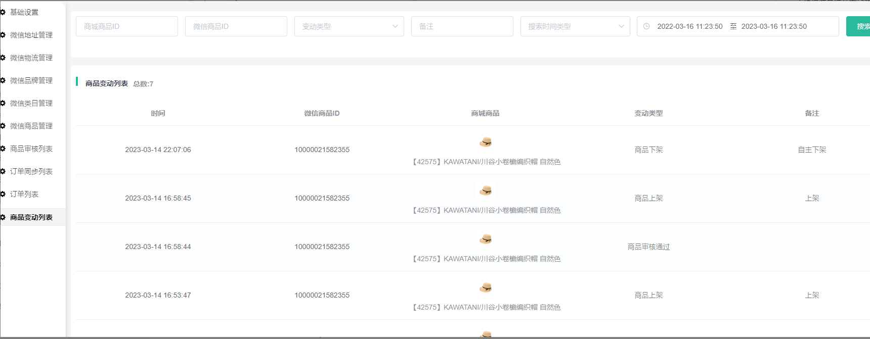 显示商品变动ID,商品名称,变动类型,备注