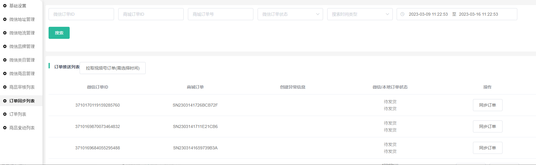 八、订单同步列表