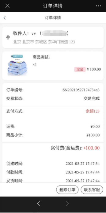 (3)尾款订单的商品后台查看订单商品是活动绑定商品,但前台订单列表页及详情页均把 商品名替换显示为活动的名称;