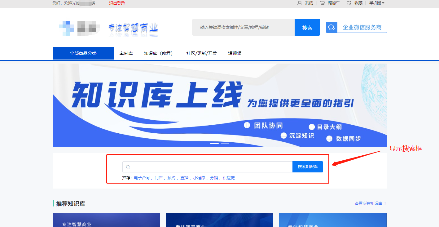2、关闭原模块搜索:当前仅支持知识库和微社区,勾选后,原模块中的独立搜索框将不再显示。