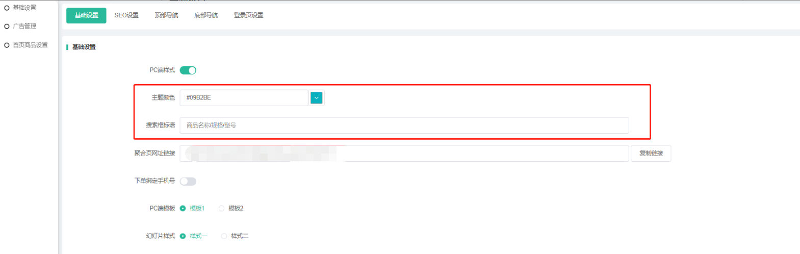 主题颜色:设置PC端导航、按钮等主要元素主题颜色;