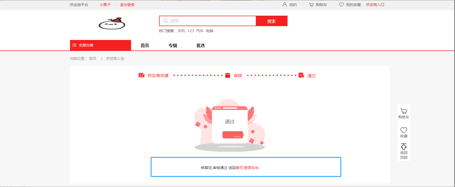 可点击图中升级成为供应商或者点击右上角供货商入口进行申请。