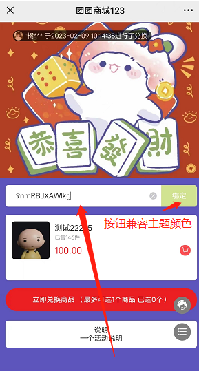 立即兑换按钮颜色:可以自定义兑换按钮颜色