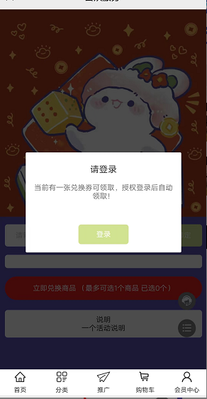 通过兑换码二维码扫码访问的,被扫的兑换码是未发放状态的,自动发放该兑换码给扫码用户! 登录成功后返回这个页面,并主动给该会员发放该兑换 ~