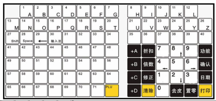 1. 条码打印计价秤键盘图: