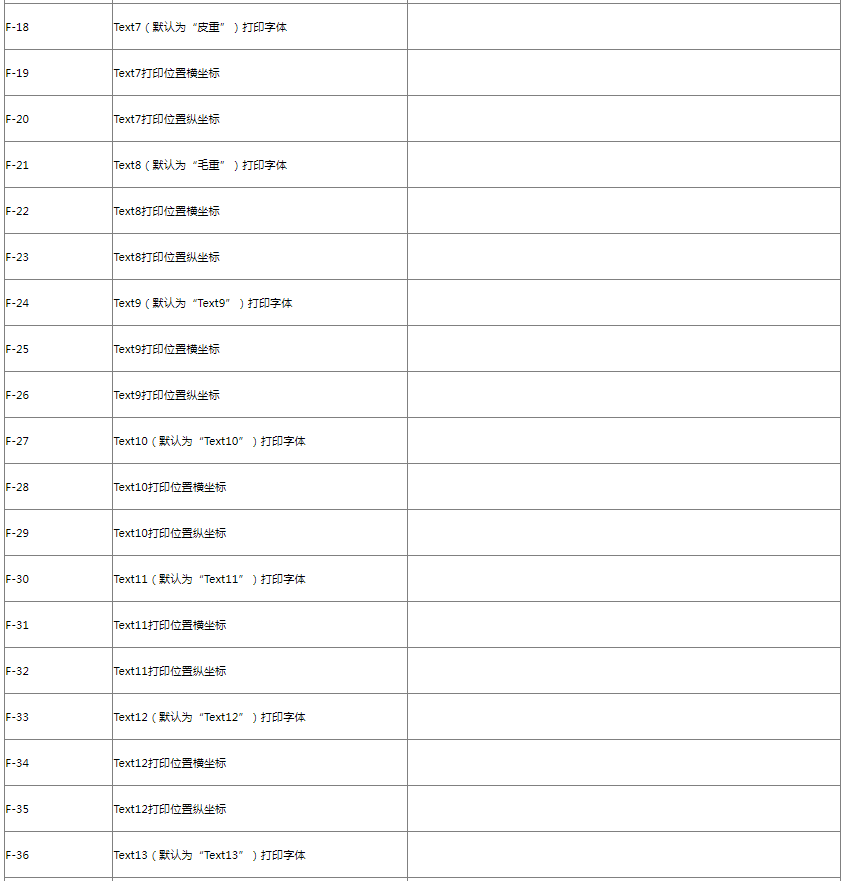 通用部分格式主要打印内容包含:商品名称、净重、皮重、毛重、单价、总价、包装日期、有效期、特殊信息、条码等;Text文本格式打印内容可由客户自行定义(内容编辑详见“5.3 Text文本编辑”)。
