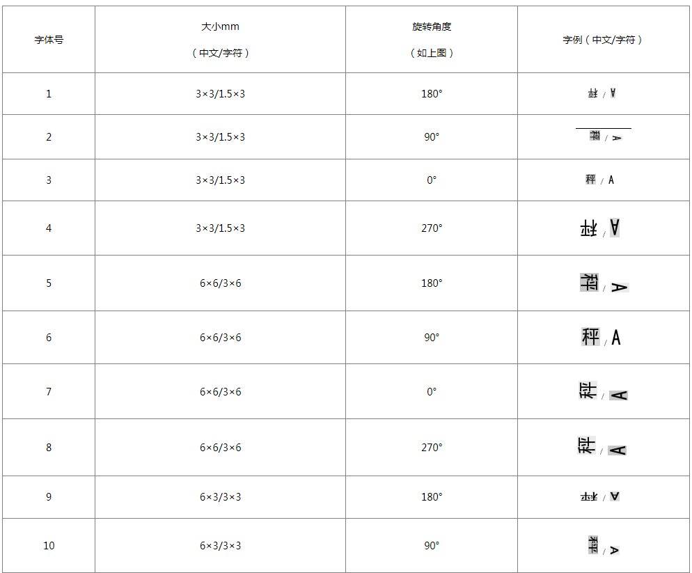 4.5.3 打印字体说明