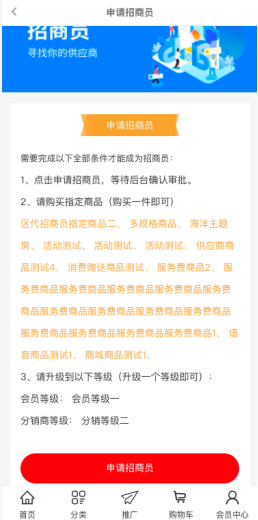 2, 非招商员进入申请页面,此页面显示成为招商员的条件和申请按钮