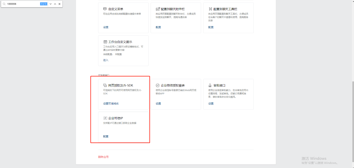 若添加了还不行,检查自建应用 -- 开发者接口 -- 网页授权js-sdk 和企业可信ip是否配置好了。