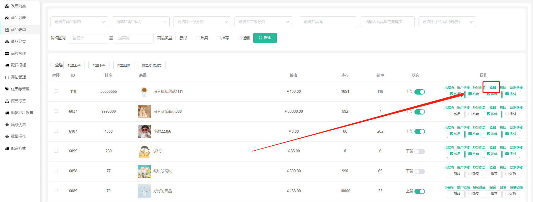 三 、 商品列表需要--编辑商品-虚拟卡密,购买这件商品是否赠送卡密