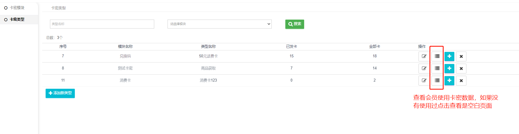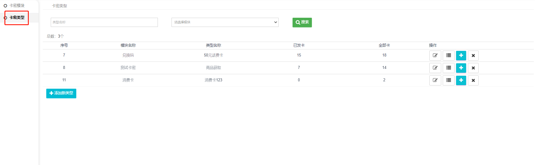 赠送卡密方式:1. 赠送某个模块下的卡密 2. 赠送某个类型的卡密