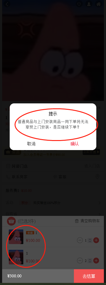 1、会员在门店商品页选择上门安装商品加入购物车下单,上门安装商品和普通商品不能一起下单,上门安装商品在门店购物车列表会显示安装字样