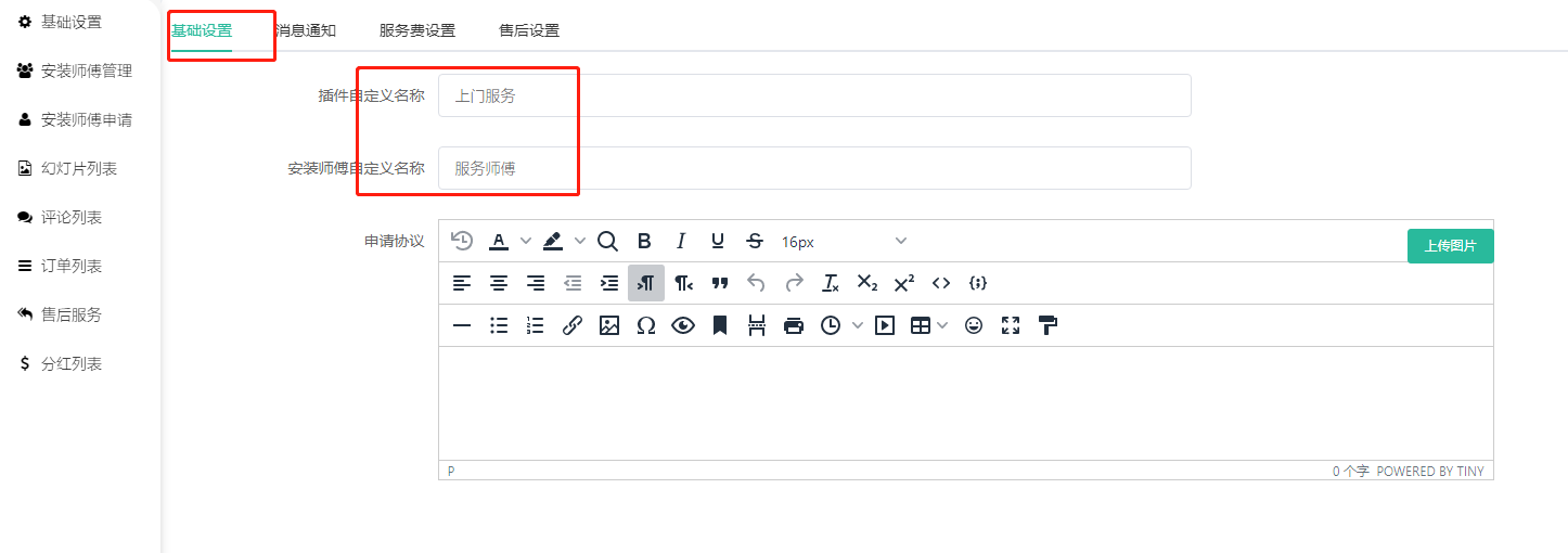 安装师傅自定义名称:设置好后前端的安装师傅字样随自定义名称改变
