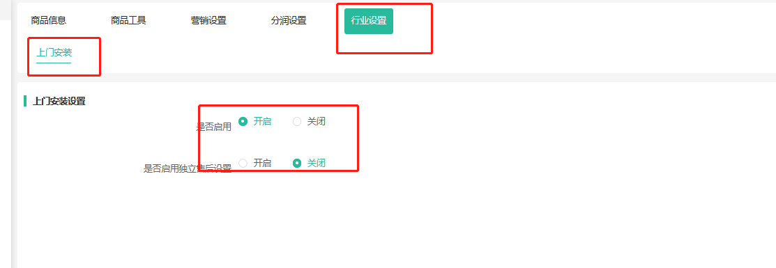 1) 开启上门安装功能,开启后该门店开启了上门安装的商品下单才会显示安装服务