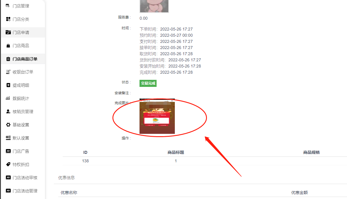 9、后台订单列表--查看订单详情可查看按照完成的图片