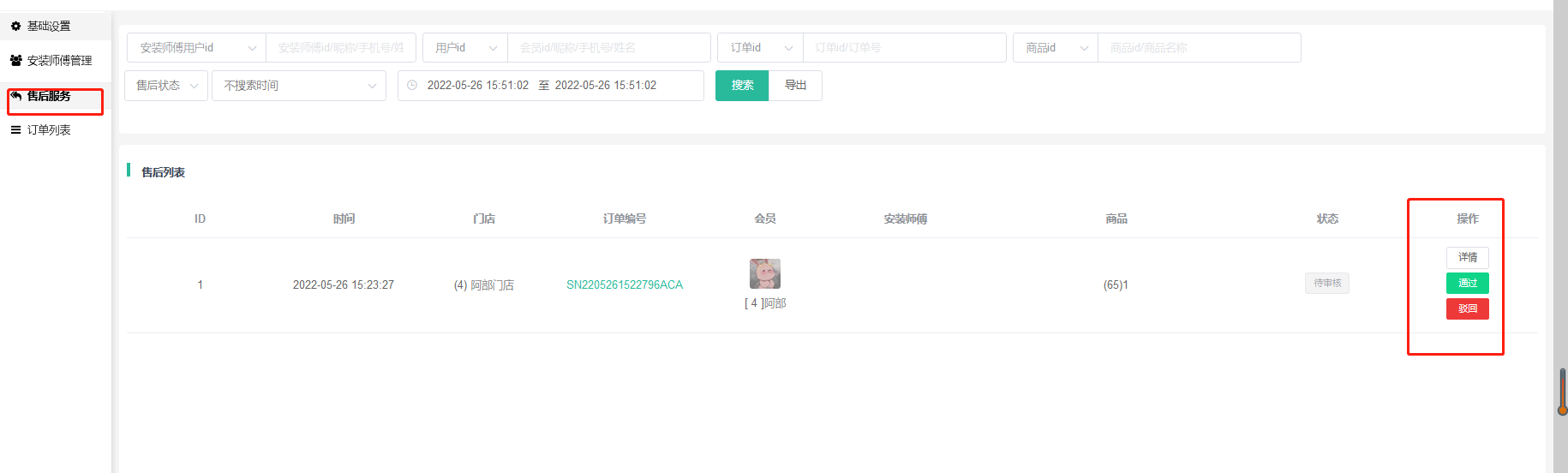 1、会员在门店下单,下单选择安装服务,提交订单后此处就会显示订单