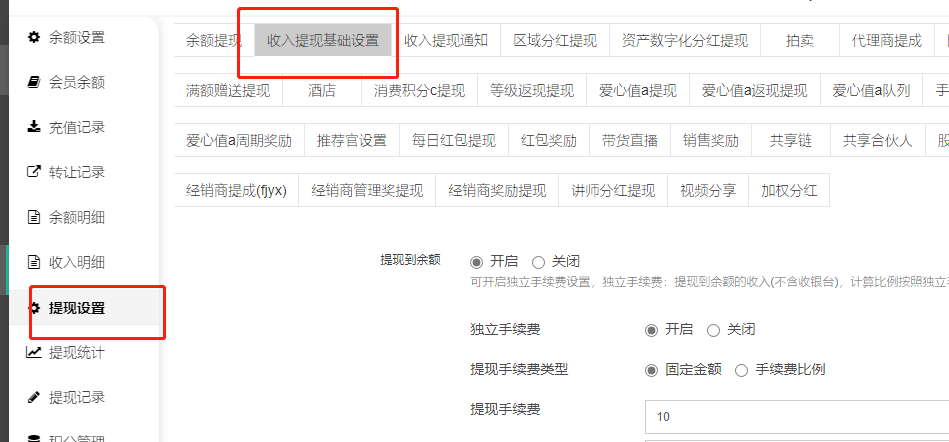 另外安装师傅前端提现,提现手续费是根据商城后台--财务--提现设置--收入提现基础设置中设置的手续费扣除