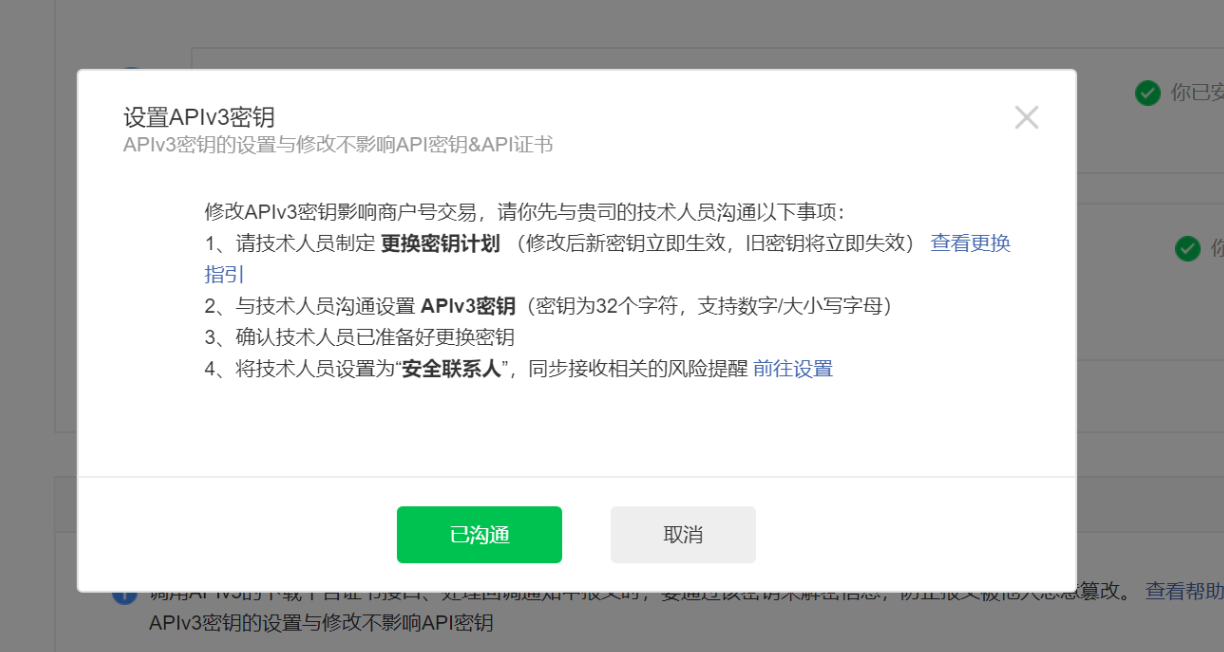 如果共用微信公众号的微信商户号,填写同一个APIV3密钥,若不是,登录各自微信商户平台设置。